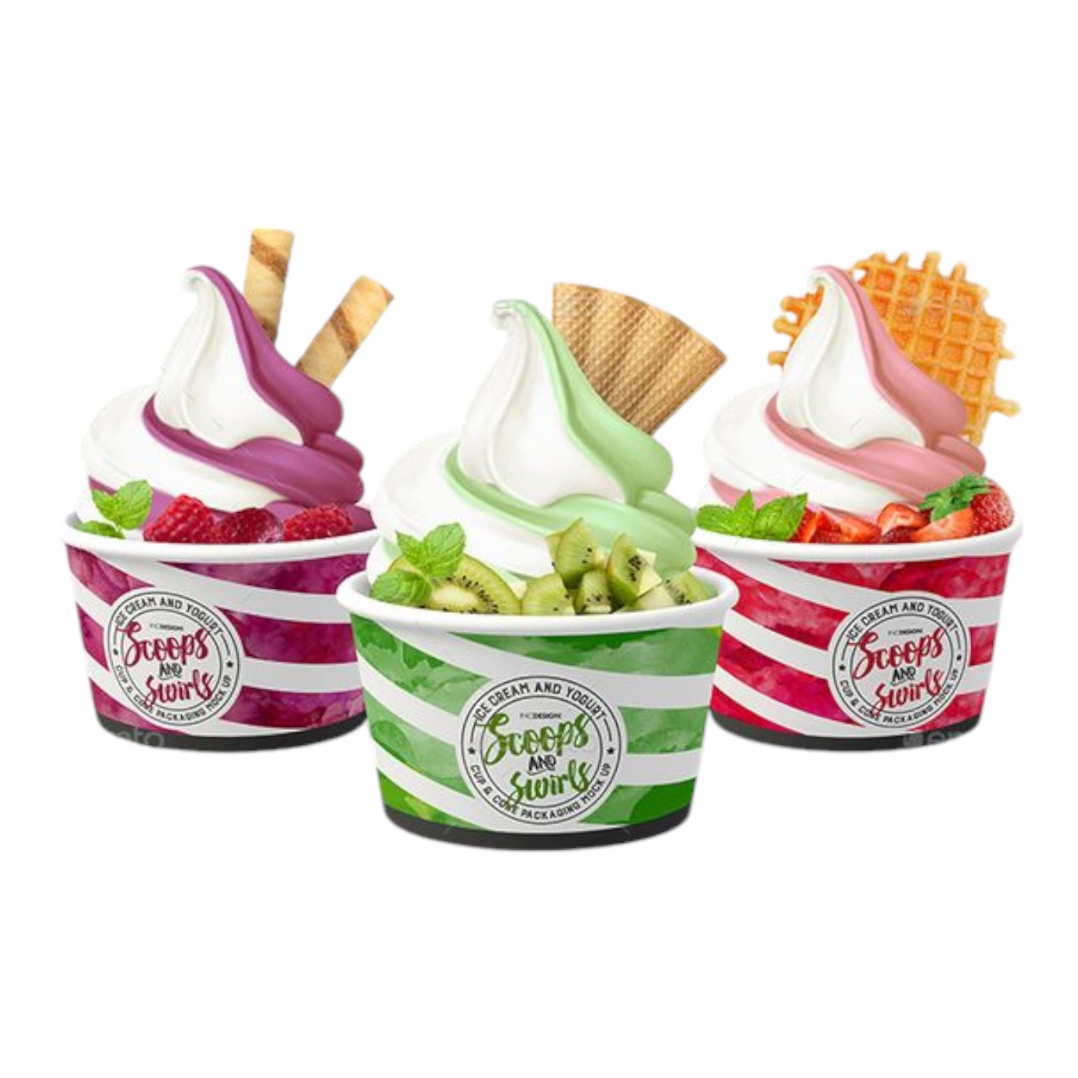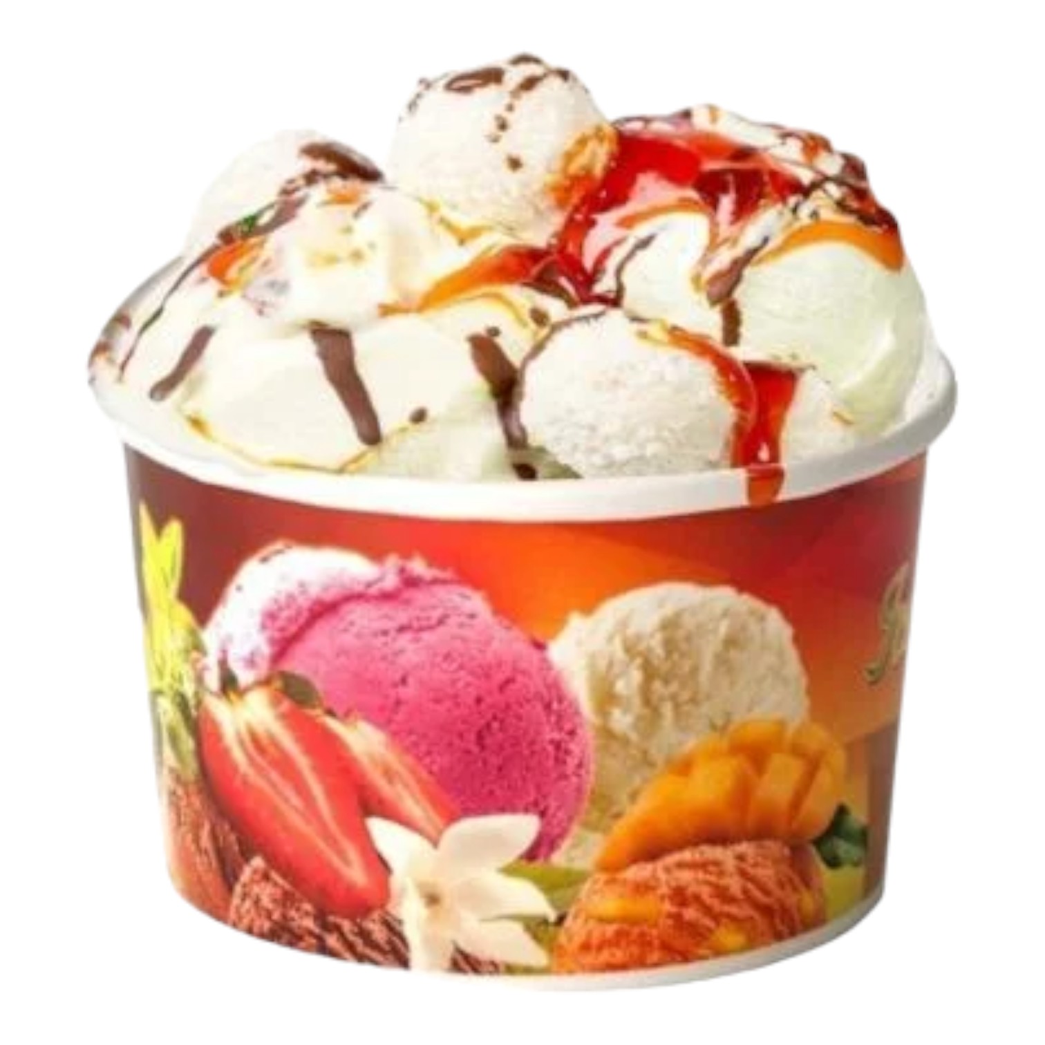 230 cc Baskılı dondurma kasesi, dondurma satışı yapan işletmeler için hem estetik hem de işlevsel bir seçenektir.
