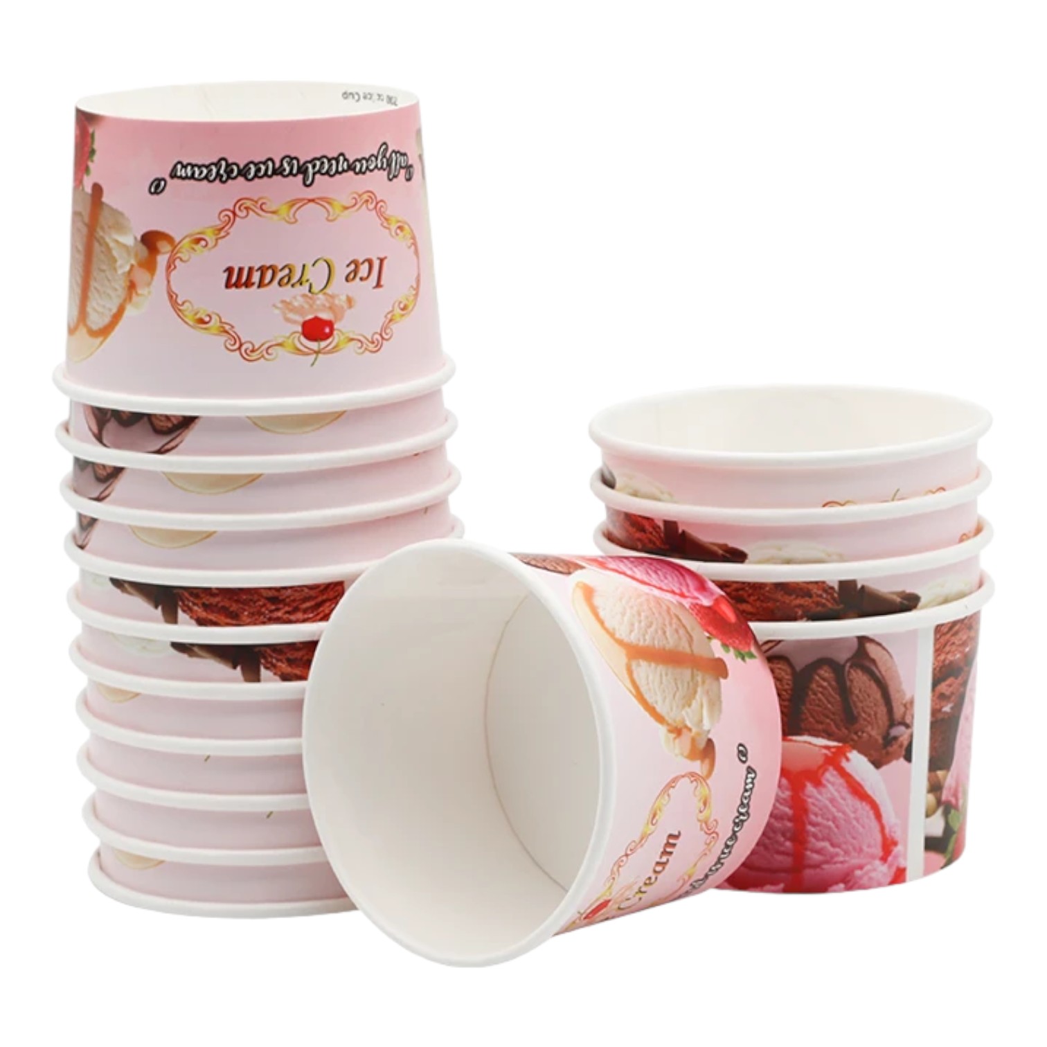 - Baskılı dondurma kaseleri genellikle karton veya plastik malzemeden üretilir.