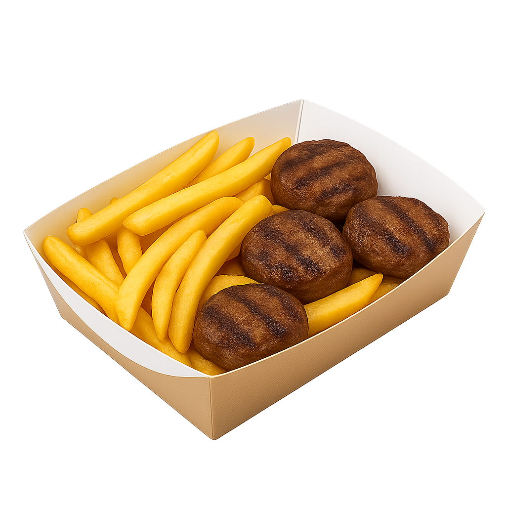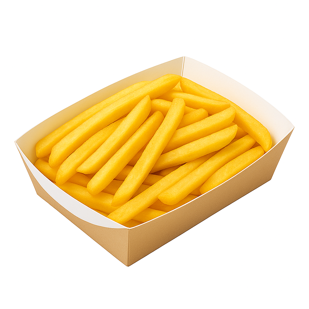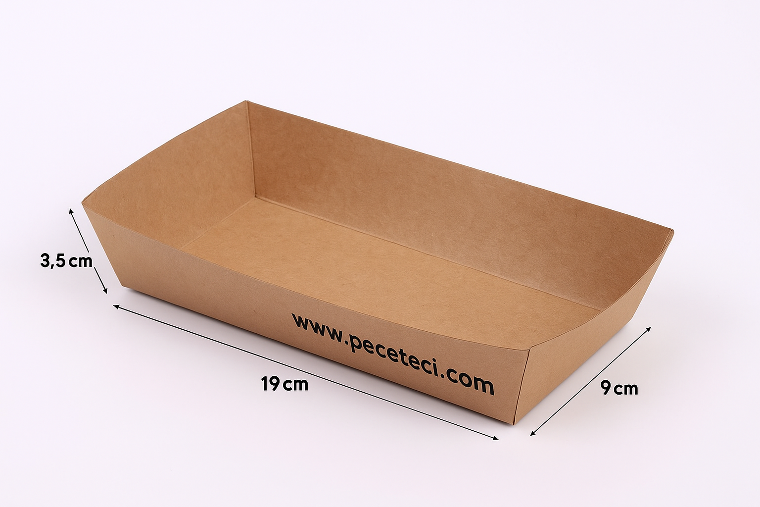 Karton patates kızartması tabağı, fast food ve street food sunumları için özel olarak tasarlanmış tek kullanımlık, çevre dostu bir gıda kabıdır. Kraft karton malzemeden üretilen bu tabak, hem estetik görünümü hem de sağlam yapısıyla öne çıkar. Özellikle sıcak ve yağlı ürünler için tercih edilen bu kraft gıda kabı, patates kızartması, nugget, kroket, soğan halkası gibi ürünler için idealdir.